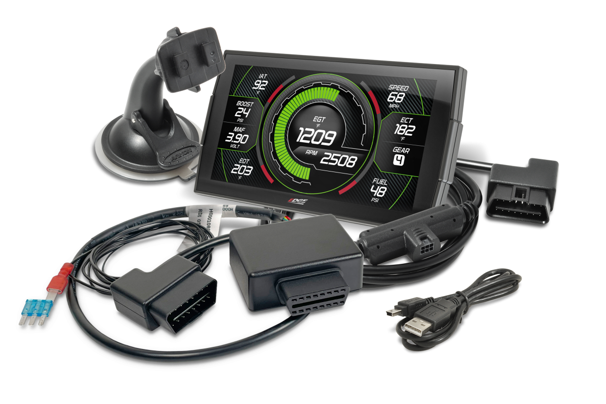 The Edge Evolution CTS3 is the ultimate performance upgrade for 2017–2023 Chevy Silverado and GMC Sierra 6.6L L5P Duramax trucks, combining powerful flash tuning with the industry’s best in-cab monitor. This all-in-one device includes the revolutionary Edge Locksmith tool, which unlocks the ECM and TCM through the OBD-II port, giving you access to preloaded emissions-friendly calibrations designed for daily driving, towing, fuel economy, and performance. Simply flash your truck, unplug the tool, and enjoy safe, reliable power gains you can feel every time you drive. The CTS3’s 5-inch high-resolution touchscreen provides unmatched visibility and control, letting you track critical parameters, log performance data, and customize gauge layouts. Beyond tuning, the Evolution CTS3 gives you access to an impressive range of adjustable features including tire size recalibration, speed limiter adjustment, remembering tow/haul and exhaust brake settings, and more. With its intuitive swipe interface, built-in diagnostics, and Wi-Fi update capability, the CTS3 sets the standard for modern diesel tuning and monitoring. The Evolution CTS3 also made history as the first to market with 10-speed transmission tuning support, unlocking smoother, stronger shifting on 2020+ L5P trucks. Now, it’s once again leading the way as the first to offer direct OBD-II flash tuning for 2017–2019 6-speed transmissions, eliminating the need for bench flashing or third-party hardware. Backed by Edge’s 20+ years of diesel tuning expertise, the Evolution CTS3 for L5P Duramax is the go-to choice for owners who want big power gains, better fuel economy, imrpoved drivability while towing and advanced features, and the most powerful monitor in the industry, all in one sleek package. A PC and our downloadable Update Agent software will be required in order to complete this tune process **Device can unlock and tune only one vehicle. Once the ECM is unlocked and flashed, the flash can be returned to factory settings, but the Unlock process can not be reversed. If VIN lock and ECM Unlock has been completed, device is non-returnableIn-vehicle ECM unlockRemember last button setting for exhaust brake, tow/haul, and grade brakingAdjust speed and rev limitersRead and clear DTC'sAdjust Idle Up feature for 600-1800rpmsAllison Transmission RelearnGreat for daily driving and towing performanceTuning has passed all in-house emissions testing with CARB EO submissions being processedCalibrations developed to offer clean, efficient DPF friendly performanceDoes NOT support the removal of emissions equipmentNow includes industry's first OBD-II flashing for TCM tunes (TCM calibration included)Adds up to 150hp/350tq to the tiresMonitor displays important data like Soot, Miles Since Last Regen, EGT's, Boost and Fluid TemperaturesEconomy (75hp/150tq), Towing (100hp/200tq), Performance (125hp/250tq), Extreme (150hp/350tq) *Peak RPM Gains1.3 seconds faster in the 1/4-mile, gained 8mph!Throttle Boost feature allows user adjustable pedal sensitivityCalibrate speedometer for tire sizes 26-38"Command manual DPF regeneration cycle