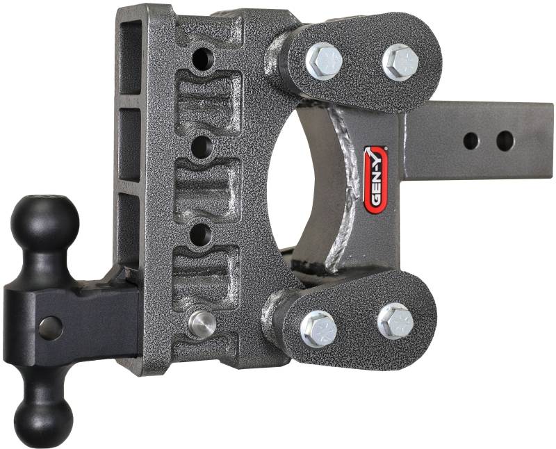 GEN-Y's Boss Adjustable Drop Hitches start at 10,000 LB towing capacity and go up to 32,000 LB towing capacity. The Torsion-Flex Drop Hitch is the best hitch for ultimate control and safety while towing any bumper style trailer on the market including pintle style couplings.