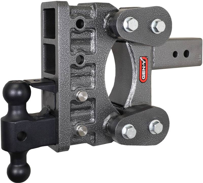 GEN-Y's Boss Adjustable Drop Hitches start at 10,000 LB towing capacity and go up to 32,000 LB towing capacity. The Torsion-Flex Drop Hitch is the best hitch for ultimate control and safety while towing any bumper style trailer on the market including pintle style couplings.