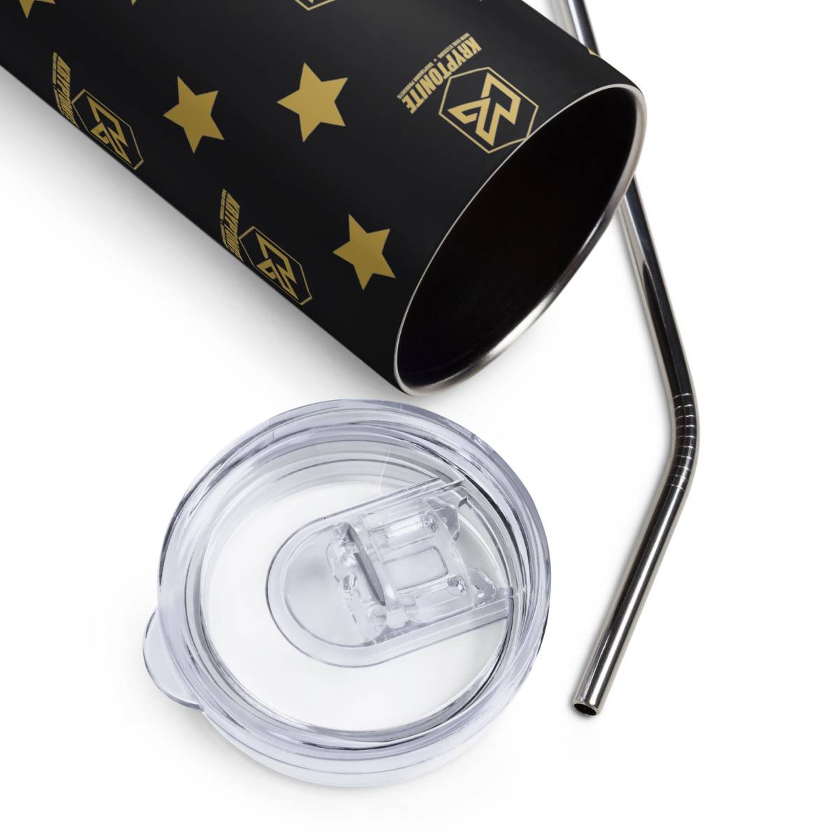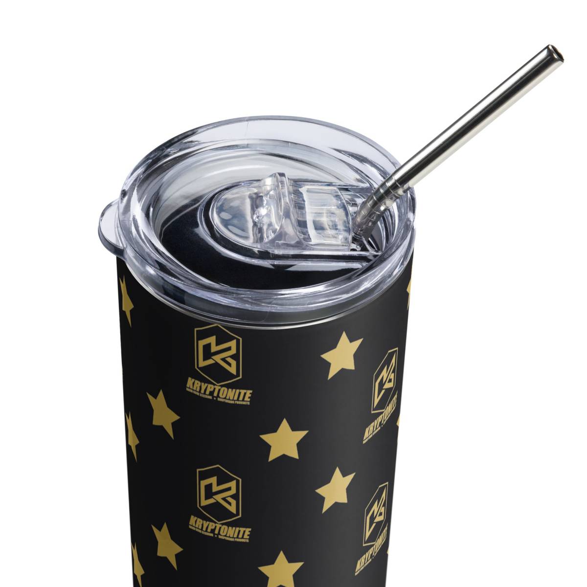 Enjoy hot or cold drinks on the go with this bad*** stainless steel tumbler! Comes with metal straw, great for mixing your favorite on the go beverages.