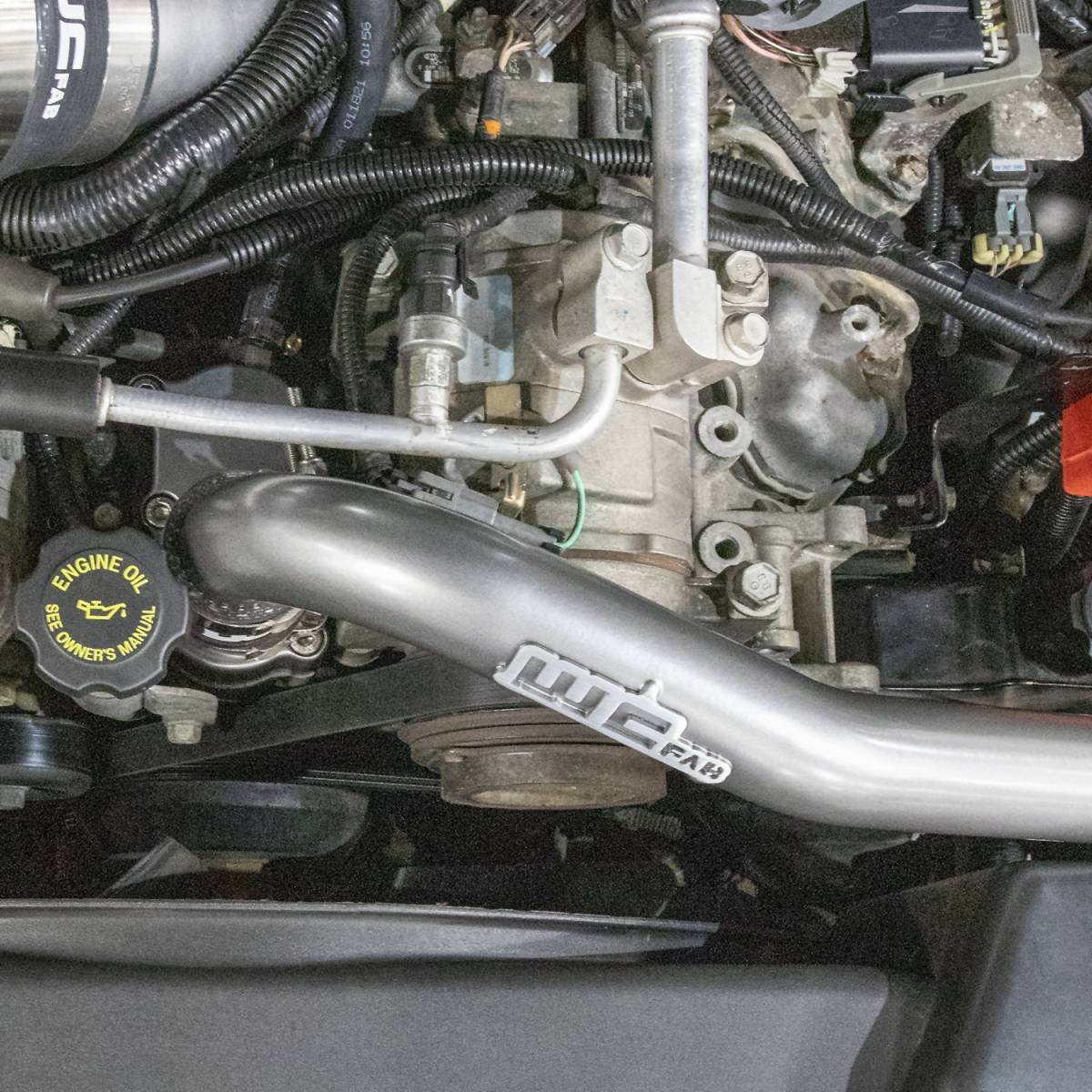 We offer a replacement coolant pipe for all model years from 2021 to 2024 and a few different versions for some models. One thing about our pipes that is a little different from some of our competitors is that we use a heavier gauge, 14 gauge material versus many other guys that use 16 gauge. The reason for that is when you go to tighten your clamps, you don't have to worry about crushing down and kinking or creating dents in that pipe, which happens with some of that thinner gauge material. So it's a good heavy-duty wall you can crank on that T bolt clamp to ensure those boots don't leak and not worry about crushing that aluminum pipe.