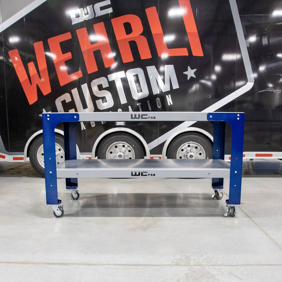 These heavy duty steel modular work benches from WCFab are CAD Designed, Precision Laser Cut, and CNC Bent from 11 gauge steel. Interchangeable top and shelf are fully gusseted with interlocking ribbed construction and MIG Welded (TIG Welding on Stainless Steel Tops) to provide an excellent balance of strength and durability with overall weight when used as a rolling work station utilizing the optional casters.