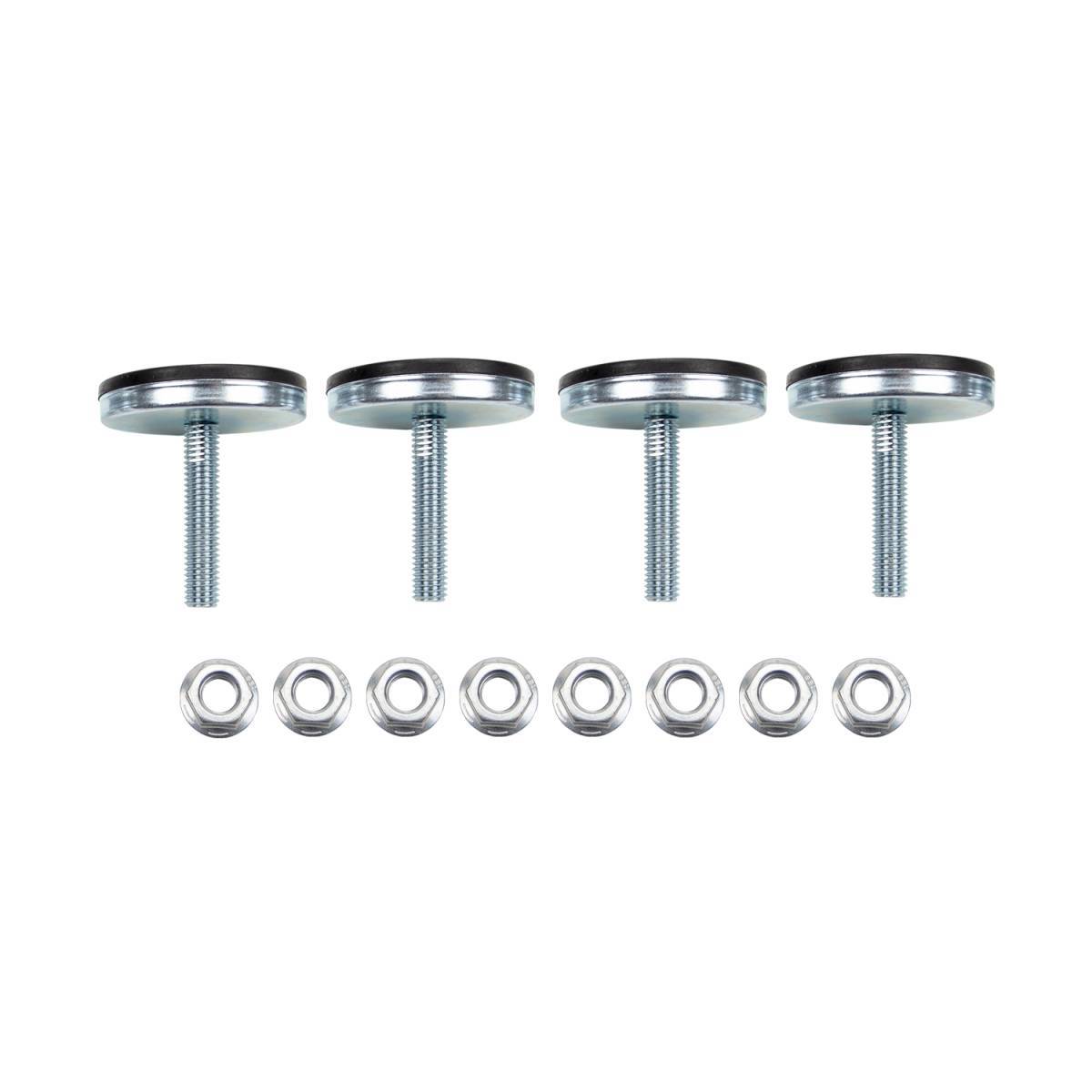 - Leveling pads (providing an additional 1.5 inch of height adjustment and corner to corner adjustment for uneven flooring)