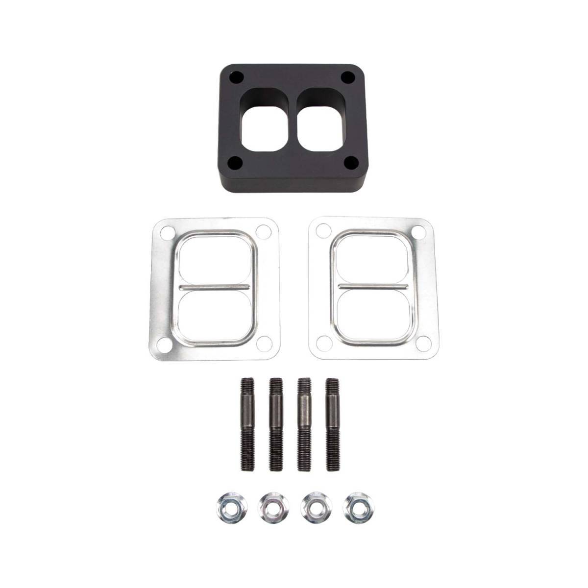1" Thick Steel Divided T4 Spacer Plate Kit, Ceramic Coated Black. Includes M10 Mounting Studs 65MM long, nuts, and two T4 Gaskets.