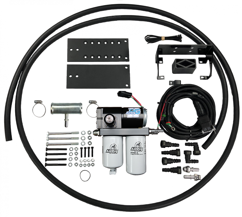 This is the AirDog® II-5G DF-100-5G fuel system for the 1992-2000 Chevy/GMC 6.5L Diesel. This fuel system replaces your factory low pressure frame rail mounted pump. This diesel lift pump mounts to the frame rail using the supplied sandwich plate mounting system. The suction side of the AirDog® hooks up to the factory suction line. The pressure side connects directly to the factory injection pump feed line on the frame. The AirDog® Air/Vapor return is sent back to the tank through a filler neck tee. This is a 100GPH (Gallon Per Hour) lift pump system. Check out our installation manual for a list of parts that are included with this kit.