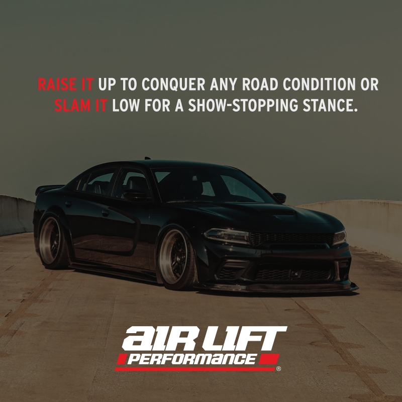 The 76517 rear air suspension kit from Air Lift Performance delivers an aggressive drop, smooth ride quality, and track-ready control for your 2015-2023 Dodge Charger,2011-2023 Dodge Challenger & Chrysler 300/300c.
