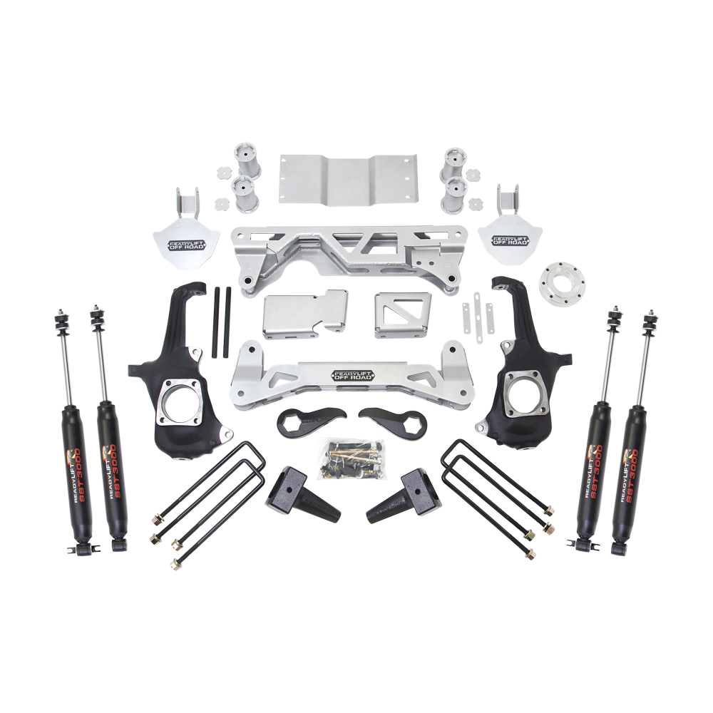 ReadyLIFT 5'' to 6'' Adjustable Lift Kit Systems made to fit the 2011-2019 Chevy Silverado / GMC Sierra 2500HD/3500HD 2WD/4WD trucks. This kit includes four (4) SST3000 shocks designed for this kit. Lift your GM 2500HD / 3500HD truck the right way! The premium complete 5''-6'' adjustable height front Lift Kit for 2011-2019 Chevy Silverado/GMC Sierra 2500HD/3500HD 2WD/4WD. This kit is specifically designed to give you a quality lift and rugged off road strength while maintaining the factory ride on the street. The complete kit 44-3052 Includes Bilstein 5100 Shocks for a premium ride. This system features precision-designed laser-cut and CNC formed sub-frame assemblies that directly bolt in. Includes custom formed nodular iron knuckles engineered to provide perfect geometry, ride and handling performance. Includes an integrated differential drop bracket system to ensure correct CV axle angles on 4WD applications and maximum performance in 4WD mode. Front lift is provided by ReadyLIFT Forged Torsion keys. This system provides adjustable lift from 5'' to 6'' while maintaining the factory ride. To lift the rear, this system includes OEM quality cast iron rear blocks that doesn't sacrifice ride quality. Kit includes tough steel bump stop extensions, skid plate, and sway bar end links. Stock 20'' wheels OK or 9'' wheel w/ 4.75'' - 5.5'' BS - Stock 17'' or 18'' cannot be run with this system. NOTE: SRW (Single Rear Wheel) models may require custom U-Bolts to accommodate factory tow package. Will not fit DRW (Dual Rear Wheel) applications without custom U-bolts. Towing Capacity will be reduced with the installation of this kit. NOTE: This kit is primarily designed to only be driven in 2WD at speed on public roads and that 4WD is only to be used off-road or in adverse slow speed conditions due to drive line vibrations at high speeds. Double cardan driveshaft may be required to help eliminate some of the high speed 4WD front driveline vibration when kits are 5-8'' high.