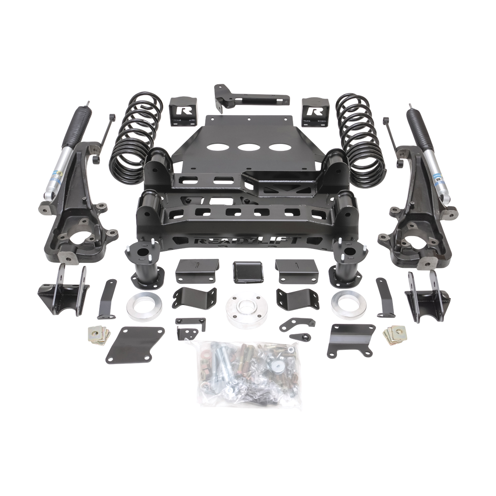 TRD Pro Plus 6! ReadyLIFT 6" Complete Lift Kit for 2015-2021 Toyota Tundra TRD Pro Trucks! ReadyLIFT delivers a great new Pro Plus 6 lift kit that will provide 6" of front lift to TRD Pro Tundra trucks that come factory with 2" of front lift. That equals the same height as our 8" lift kit on a standard Tundra. And even better, this kit allows you to retain use of the factory Bilstein/Fox coil-overs and reservoir rear shocks! That's right, this great system retains use of ALL of the factory TRD Pro suspension components. Note: This system will only work with factory 20" wheels - will not work with some factory 18" wheels. Aftermarket wheels okay with correct offset. Note: For use only on 2015-2021 Tundra TRD Pro w/ Bilstein/Fox coilover shocks. Note: Will not work with the TRD rear swar bar option.