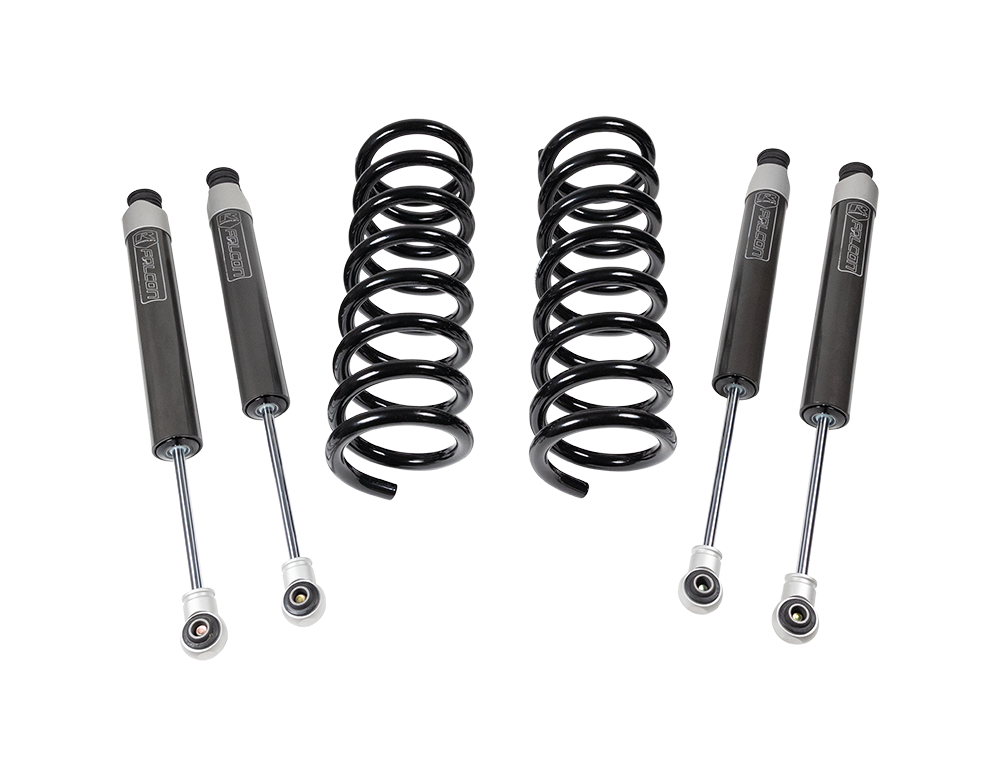 The new Ram HD 1.5" Leveling Kits are specifically designed for Heavy-Duty applications utilizing ReadyLIFT-engineered new front coil springs and Falcon 1.1 Monotube front & rear shocks. A front coil spring leveling kit is the ideal solution for level-lifting the front of your truck offering notable ride comfort when compared to spacer solutions. The coil spring system allows for increased tire sizes and widths along with providing improved ground clearance and a more commanding view of the road all while reducing rake when lightly loaded. The new 1.5" leveling kits allow up to a 35x12.50 tire and 20x9 wheel with a 0 offset.