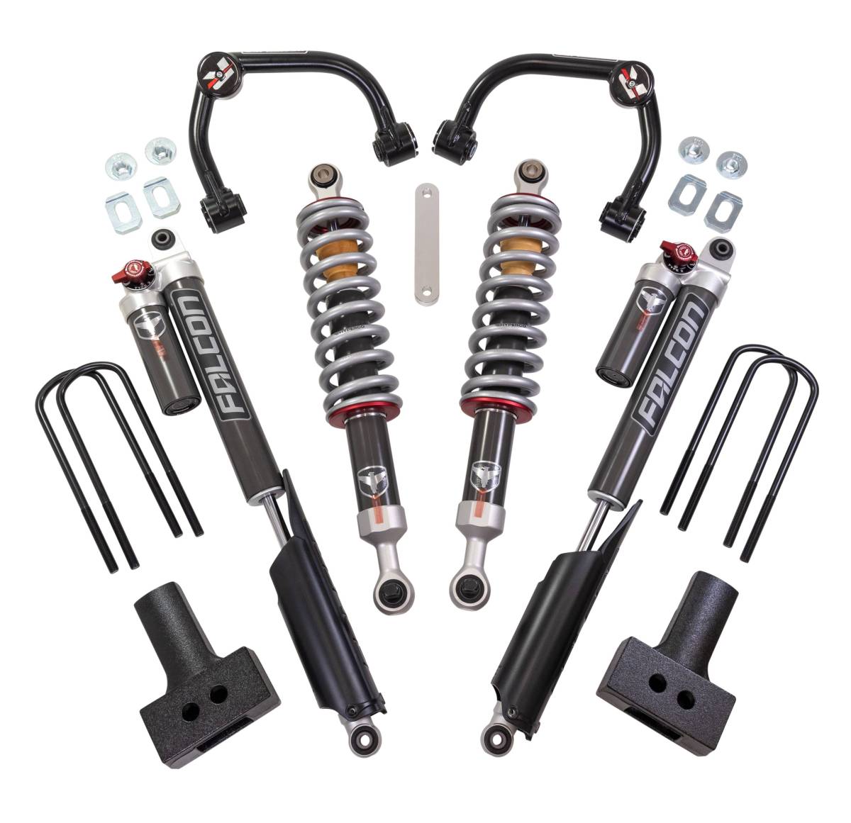 Features and Benefits:· 3.5" front lift with a 2.5" rear blocks.· Allows for up to 295/60R20 on a 9" wide and +18 offset.· Fit up to a 35"x12.5" wheel 20"x9" with 0 offset with minor trimming.· DOM tubular steel Upper Control Arms with market-best heavy-duty high-angle proprietary ball joint.· Unmatched curb-appeal and rugged mid-size truck capability delivered in an affordable yet innovative Smart Suspension Technology “no-cut" lift kit.· “High-Value Performance" is the driving force behind our new vehicle-specific Falcon shocks.· Falcon shock absorber systems are tuned for comfort with predictive handling, control, and stability on-road and offroad.· Rear adjustable 3-position Falcon 2.1 shocks tune for daily, sport, or work duties.· Vehicle-specific performance-tuned Falcon 2.1 dampers on all four corners.o Improved dynamic roll control and low-speed damping.o Dramatic improvement in on-road comfort and off-road performance.o Optimized fitment for unobstructed suspension travel and articulation.o 6061-T6 aluminum alloy shock body resists Impact to protect internal components.o Smooth-honed internal shock body surface for long-term performance.o 3/4" induction hardened chrome plated shaft resists rock damage, corrosion, and shaft buckling.o Large shaft diameter provides a wide range of adjustments on adjustable shocks.o Hard anodized 6061-T6 aluminum alloy billet piston.o 1-piece Teflon bronze piston wear band w/ O-ring.* NOTE: Some lift heights may vary depending on factory packages. Not designed for 2WD.