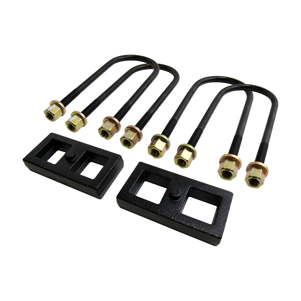 ReadyLIFT OEM-style rear block kits are available for model specific applications. These Rear Block Kits include two (2) Rear Blocks, four (4) E-Coated U-Bolts, eight (8) Nuts and Washers and will safely lift the rear of your 2002-2008 Dodge Ram 1500 2WD/4WD Truck 1". Based on OEM designs and never made out of light weight extrusions, our 1" Dodge Ram 1500 Blocks are made from cast iron. ReadyLIFT Block Kits will put a slight rake back in your truck for hauling or towing and are designed to work in concert with your ReadyLIFT Suspension Leveling Kit. Like all ReadyLIFT products, these Block Kits come with our Lifetime Warranty.