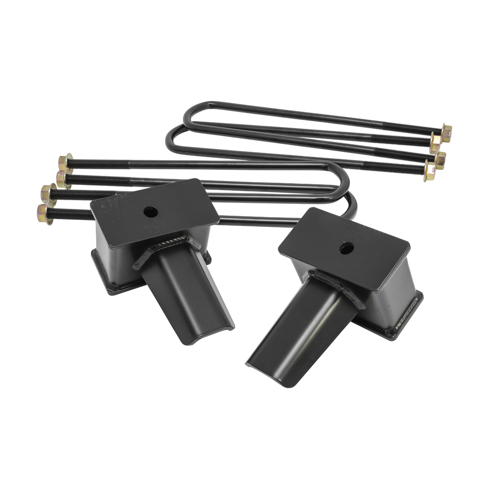 ReadyLIFT OEM-style rear block kits are available for 2017-2023 Ford Super Duty model-specific applications. These 4.0" fabricated steel Tapered Rear Block Kits include two (2) rear blocks, four (4) long e-coated u-bolts and eight (8) nuts and washers. Based on OEM designs and never made out of lightweight extrusions, our 4" 2017-2023 Ford Super Duty Tapered Rear Blocks have Integrated OEM style bump stops. ReadyLIFT Block Kits will put a slight rake back in your truck for hauling or towing and are designed to work with your ReadyLIFT Suspension Leveling Kit. In fact, these blocks are the ideal Tow Package upgrade for not only for stock height vehicles but lifted or leveled trucks too! Like all ReadyLIFT products these block kits come with our Limited Lifetime Warranty. NOTE: 66-2740 4" block is for use on 2017-2023 Ford F250 Super Duty 4WD trucks with 1-piece drive shaft. Lift height will vary depending on what factory block your truck has. NOTE: Not for use on 2019-UP F350. NOTE: The lift blocks in this kit are not designed to work with aftermarket or factory add-on air spring/load leveling kits that attach to the bump stop tangs. Use of this type of air bag system will void all block warranties and can cause the failure of the block bump stop tang.