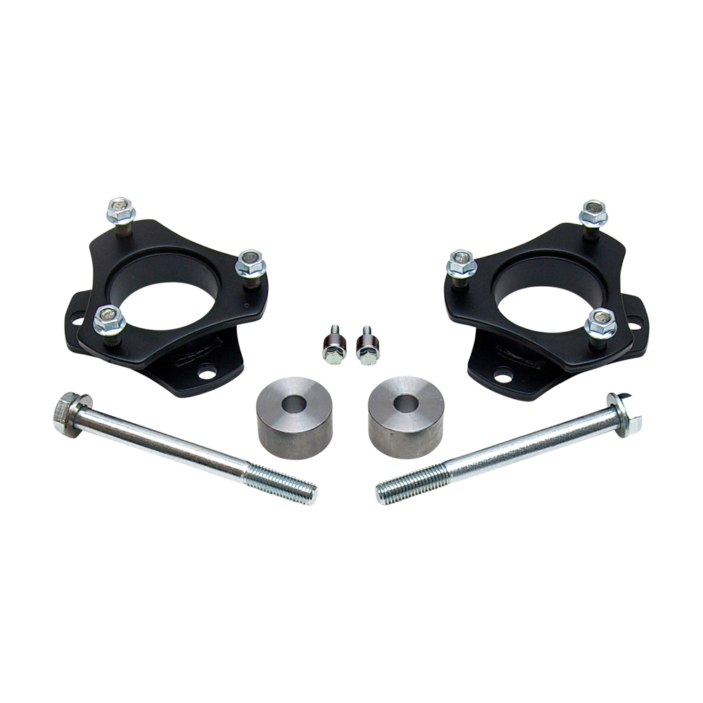 ReadyLIFT leveling kits are the fastest, safest, least expensive way to bring the front of your vehicle level with the rear. Our innovative Smart Strut Technology mounts on top of the strut assembly, eliminating the hassle, time, and danger of compressing springs. ReadyLIFT steel strut extensions will maintain a smooth OEM ride without adding pressure to stock suspension components, guaranteed! The 66-5055 strut extension provides 2.25" of lift which gives clearance to add up to 32" tires to the 2005-2023 Toyota Tacoma 2WD & 4WD and PreRunner. Up to 33" tires can be used with some minor trimming of the inner fender panel. NOTE: Some Tacoma trucks may experience a deceleration vibration. If your truck has the "Crawl Feature" transfer case and only has a 1" stock rake between front and rear, you can use the kit but do not use the differential drop spacers.