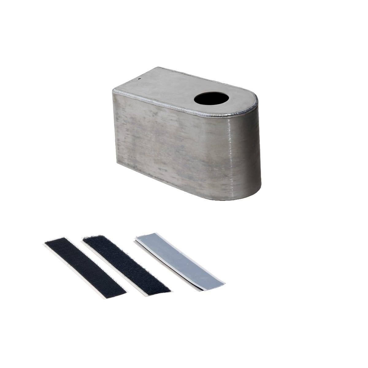 Constructed from durable aluminum and TIG-welded for strength, this reservoir cover offers a clean, finished look. Choose from raw finish or upgrade to any of HSP's standard or custom powder coat colors. Installation is tool-free it simply slides over the existing brake reservoir and attaches securely using heavy-duty adhesive-backed Velcro strips.