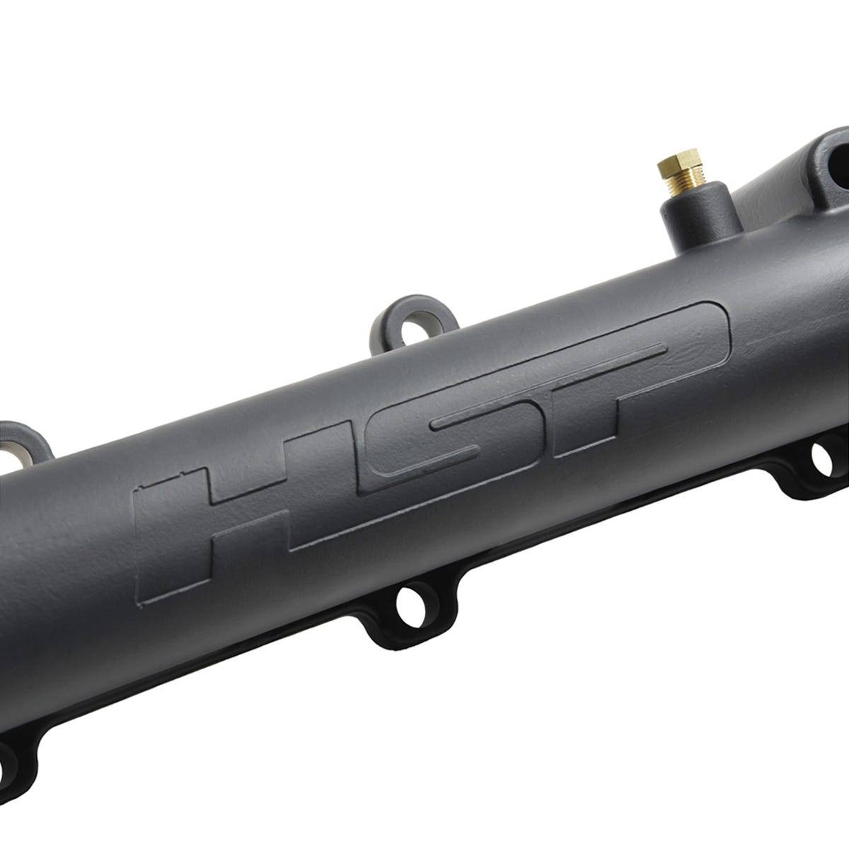 The HSP Diesel Coated Billet Manifolds are cast using high-strength steel and finished on a 5-axis CNC for a perfect fit. This precision machining maximizes flow through a more open port design, eliminating the common flow restriction found in the factory driver-side manifold. The one-piece construction provides superior strength and resistance to cracking or warping compared to multi-piece welded designs. The low-profile form also provides extra clearance for custom routing. These manifolds work with factory-style up-pipes and come ceramic coated for heat protection rated up to 2,000 Degrees F.