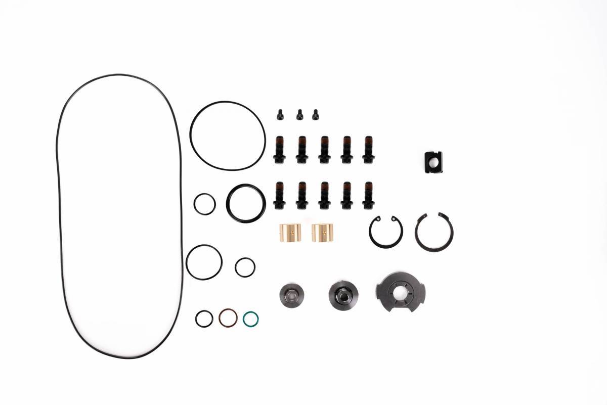 Turbo rebuild kit for the GT37 turbo found in the LLY, LBZ Duramax and the 6.0 Powerstroke. Contains 360 degree thrust bearing assembly, HD shaft bearings, gapless shaft rings, all orings, and hardware.