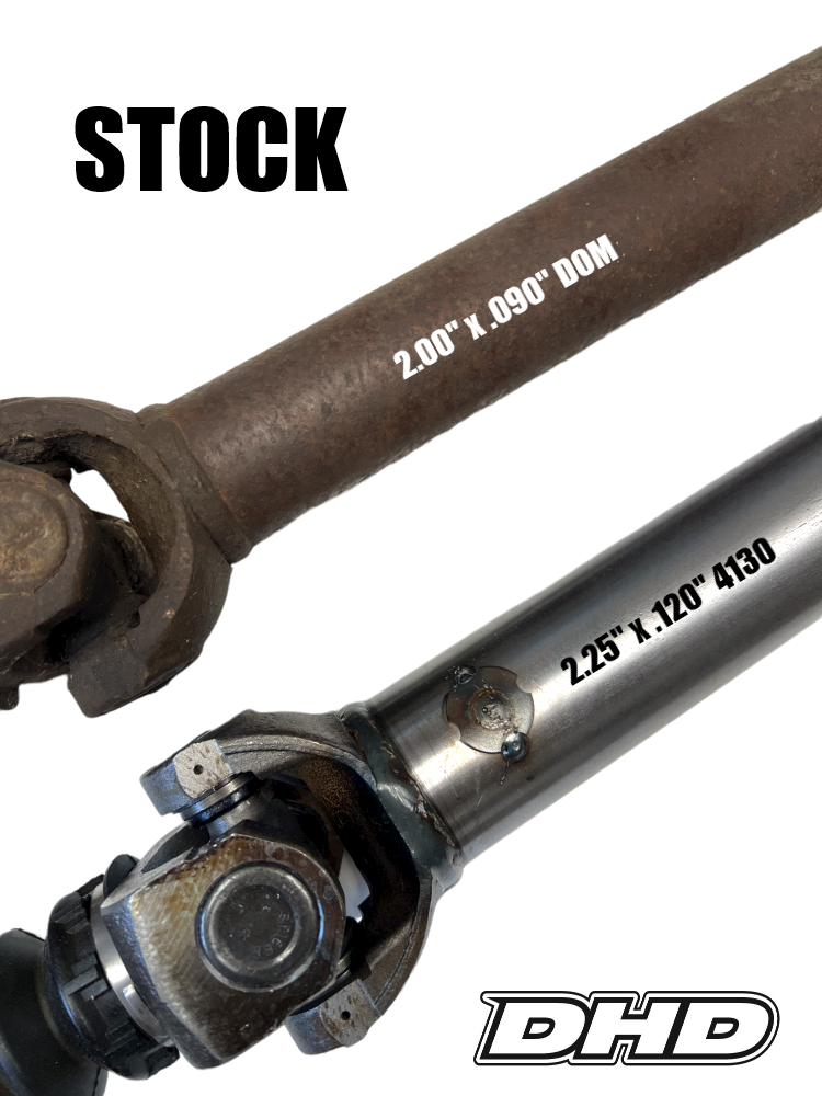 Replace your factory front driveshaft with this upgraded chromoly option from DHD. These chromoly driveshafts are custom made for us and are designed to hold up much better to todays high horsepower and torque demands. This upgraded shaft is a must for pulling trucks running 35" tires, or drag trucks leaving under high boost.