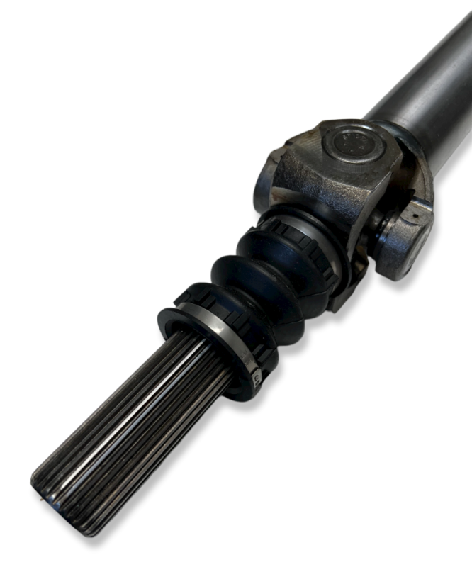 This shaft is a direct replacement and utilizes the factory 3R series u-joints. Unit comes with Spicer U-joints, Transfer Case Stub and boot with clamps installed.
