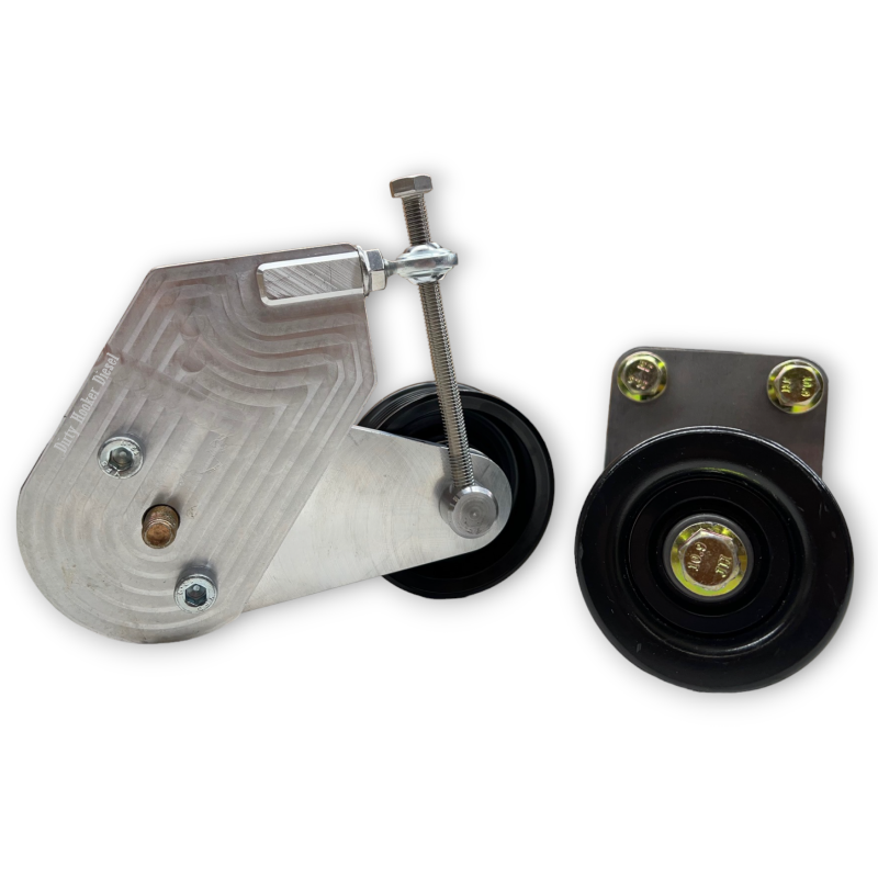 As peak horsepower and engine RPM's continue to climb, it's becoming more evident that the factory Duramax belt tensioner is not sufficient! DHD's manual tensioner package is a complete solution to eliminating belt slip and belt deflection under high rpm and high load. This two-piece kit eliminates the factory spring driven tensioner that comes on your truck and adds an addition pulley to the routing system to increase belt engagement. This kit is a must for dual fueler trucks or those exceeding 4000rpm.