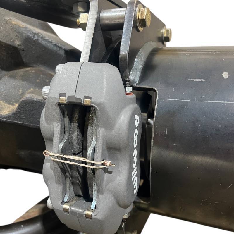 Our dual caliper pinion brake kit is a gamechanger for those looking to have maximum control over their rear axle. This brake kit was specifically developed to help pullers with automatic transmissions control their turbo and drivetrain load when leaving the starting line. Applying load to the driveline prior to leaving the line will allow you to lite large frame turbochargers easier and run a tighter, more efficient torque converter.